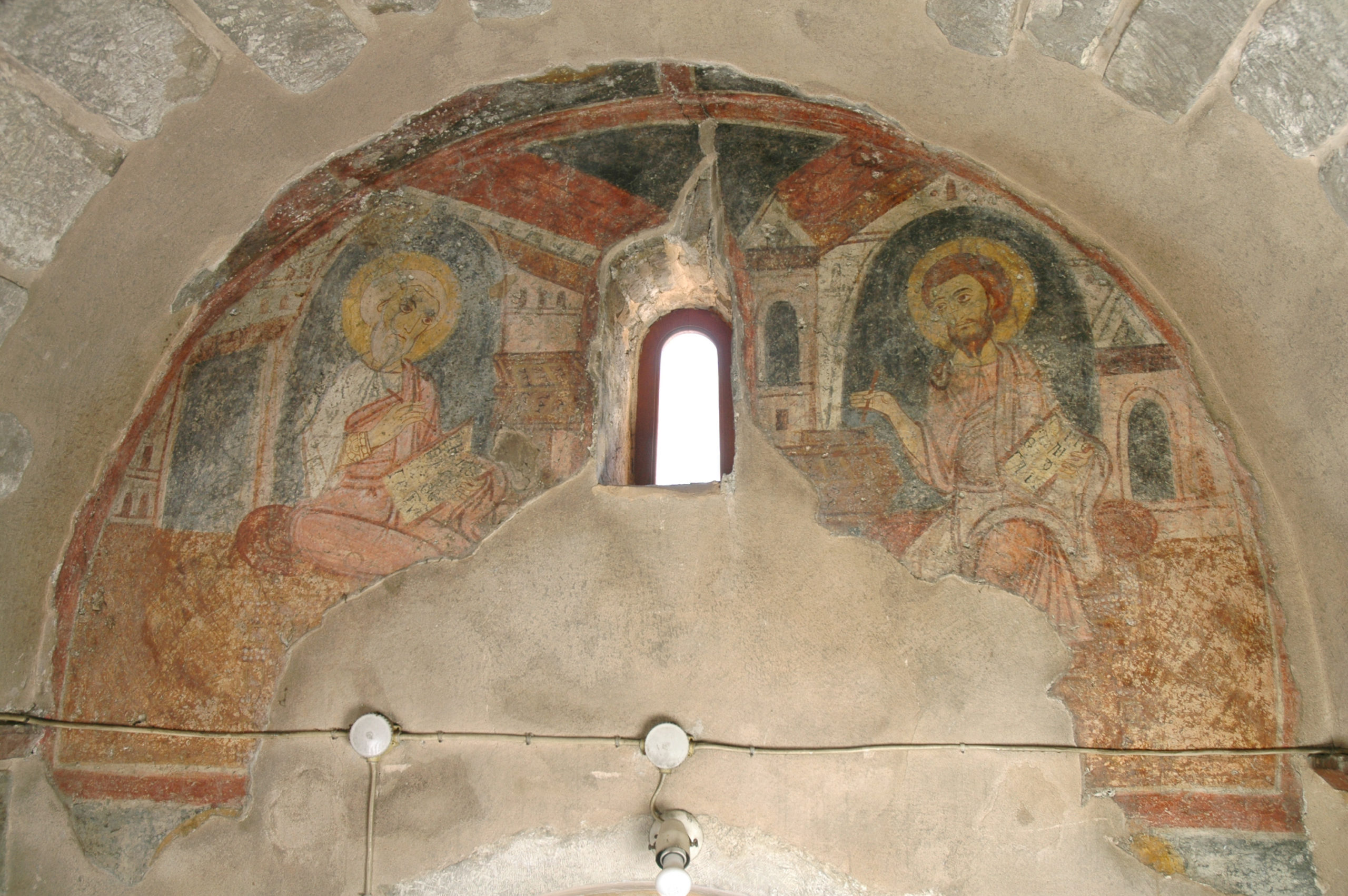 Στον ναό διασώζεται σημαντικός τοιχογραφικός διάκοσμος σε τρία στρώματα. Από το στρώμα του 11ου αι. σώζεται στον τρούλο ο ολόσωμος Χριστός με αγγέλους και την Παναγία, καθώς και άγιοι και ιεράρχες σε άλλες θέσεις. Από το στρώμα των αρχών του 13ου αι., διατηρούνται στην καμάρα και τους τοίχους της δυτικής κεραίας σκηνές από τη ζωή του Χριστού, και από τον 14ο αι. διατηρείται στον νάρθηκα η σκηνή της Κοίμησης της Θεοτόκου.